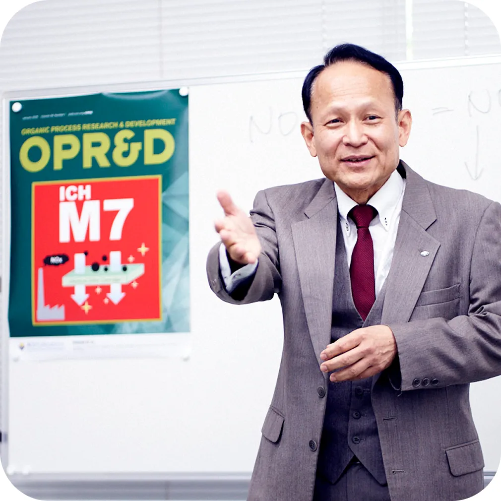 In 2019, following instructions from Japan's Ministry of Health, Labour and Welfare, we conducted detailed analyses of metformin preparations manufactured at our Yamagata and Osaka plants. As a result, NDMA contamination exceeding the control limit (0.043 ppm) was detected in 1.9% of all batches, prompting an immediate recall. The fact that all recalled products were manufactured at the Osaka plant led to the realization that nitrogen oxides (NOx) in the air were a contributing factor to nitrosation and prompted a thorough investigation into the cause. After conducting various verification experiments to confirm the findings, a paper attributing NOx as a contributing factor to nitrosation was submitted to the American Chemical Society's OPR&D journal and published in the November 2023 issue (with approximately 22,000 downloads as of September 2025).