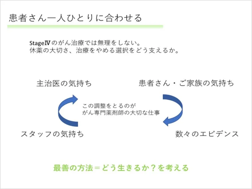何が最適かは患者個々で異なるため、都度みんなで話し合うことが大切。