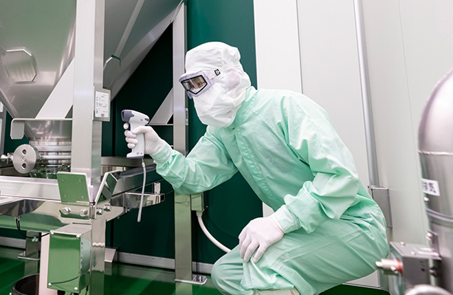 医薬品の製造には、GMP(*)と呼ばれる、国が定めた「医薬品の製造管理及び品質管理の基準」が基本にあります。